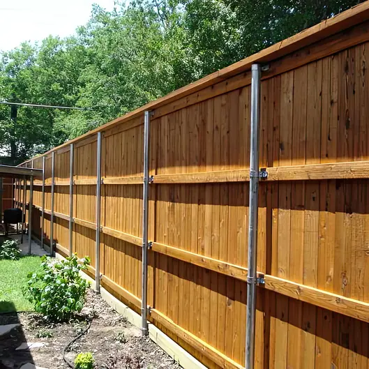 Hybrid fencing uses steel frame work and your choice of wood, vinyl, metal, composite fill kits starting @ $69/ft you will have the strongest fencing in the market place